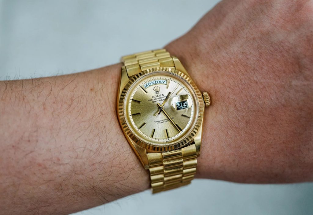 Compared to plenty of 1:1 fake Rolex watches in my collection, the numbers weren’t the issue. A clean vintage Day-Date — particularly a ref. 1803 — has often sat in a zone that’s more attainable than people assume, especially when you compare it to the prices of modern precious-metal Rolex. Yet for the longest time, the idea of a full yellow-gold Day-Date felt… Distant. Not because it was out of reach, but because of what it would look like on me.